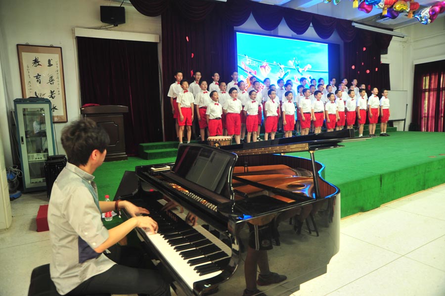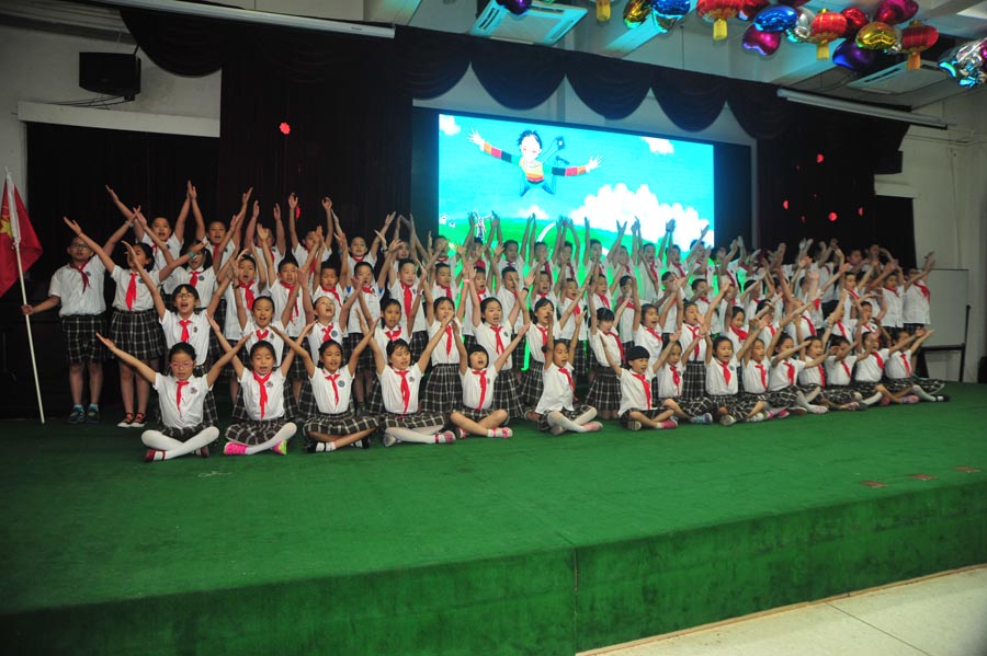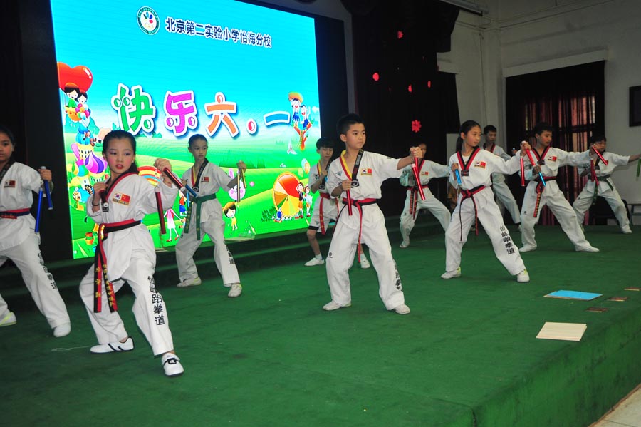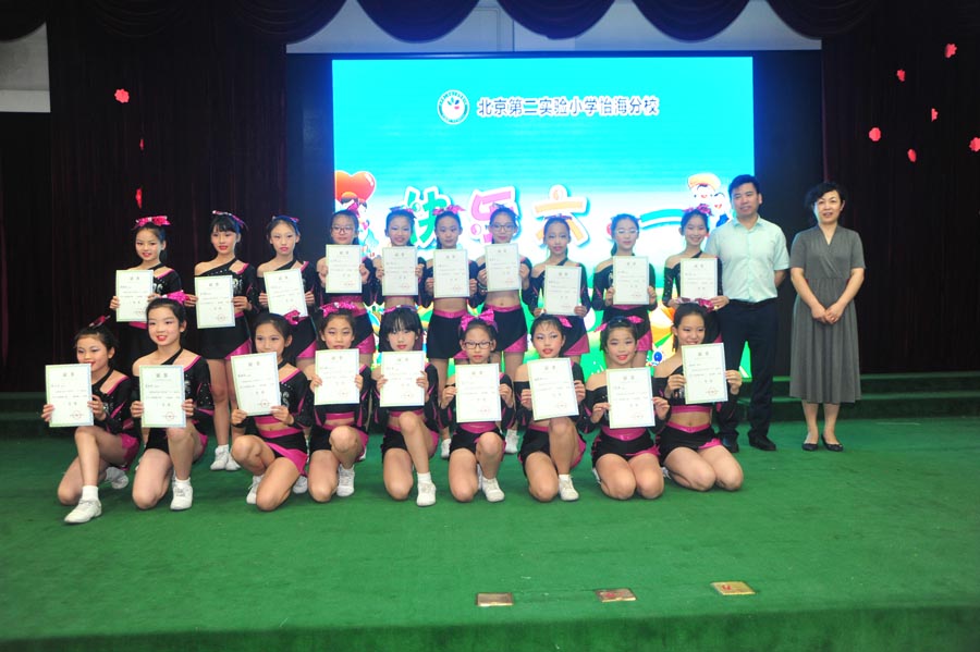 怡海小学的多功能厅一片欢腾,同学们正在举行“快乐六一”的庆祝活动,为了让孩子们充分享受这个属于我们的童年节日,见培炎校长、德育处及艺术组的老师们为全体同学精心安策划了丰富多彩的活动。快乐的节日当然要载歌载舞,管乐队,合唱团,舞蹈队,啦啦操,跆拳道,武术队依次登场,台上台下热烈呼应,会场内外高潮迭起。不仅如此,在“丰台区第二十一届十项技能大赛”中,有60多名同学在各类项目中获得第一名的好成绩,今天也为他们举行了隆重的颁奖仪式,当孩子们接过沉甸甸的证书,脸上挂满了成功的喜悦。