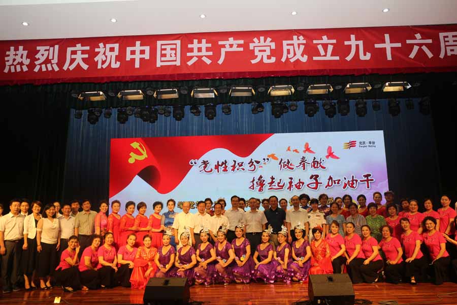 回顾党的光辉历程,凝聚党的奋进力量,近千名党员、党务工作者欢聚一堂,怡海花园社区、怡海集团党总支、海军军乐团、科技园区工会、丰台五幼以及机关党总支也为党的96岁生日带来精彩的节目表演,共同用优美的歌声,轻快的舞姿,慷慨激昂的朗诵,熟悉的旋律,献上了对党最真挚的祝福。最后,活动在“没有共产党就没有新中国”这振奋人心的歌声中落下了帷幕。党的96华诞就要来临,在这个承前启后的日子,让我们共同展望党和祖国的美好未来!今日,千人欢聚,共庆党的生日,明日,怡海将继续牢记党的先进精神和神圣使命,和大家一起紧跟党和政府的步伐,坚持党的领导,不忘初心,撸起袖子加油干!