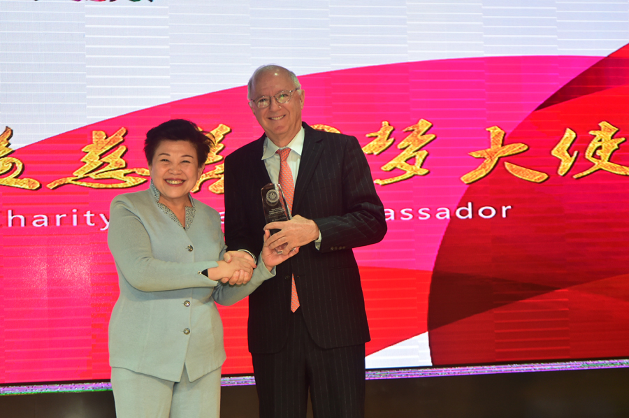 多年来也有许多外籍人士和海内外华人华侨一直帮助和支持北京怡海公益基金会的各项公益慈善活动。特别值得赞扬的是美中关系全国委员会会长欧伦斯先生,从大爱行天下第一天起就连续多年携手怡海,助力慈善,组织开展“中美教师交流”与“中美优秀高中生交流活动”,促进中美两国文化共进,为中美教育及文化交流做出了突出贡献。正是因为欧伦斯先生支持和努力,使得中美教师有了异国培训的机会,中美优秀的高中生有了共建友谊的平台,不仅圆了老师和孩子们教育互通的梦,更圆了中美两国文化共进的梦。活动上,为表彰欧伦斯先生多年来的贡献,大会特为其颁发公益慈善圆梦大使的称号。
