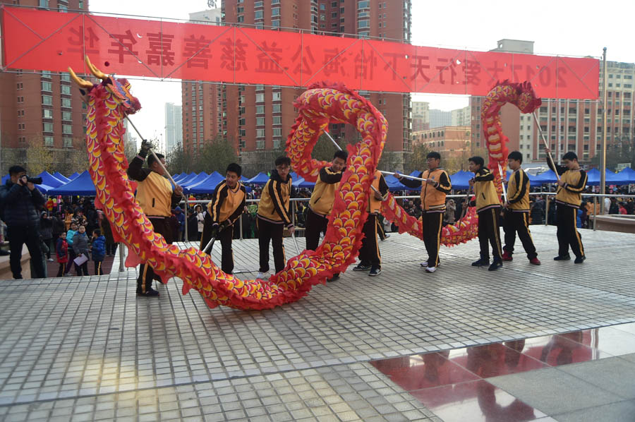 慈善大集在北京怡海中学学生们带来的精彩的舞龙表演后开始,怡海集团董事局主席王琳达女士和美中关系全国委员会会长Stephen A. Orlins先生等各位贵宾一起敲响了开市大锣,红红火火的慈善义卖大集正式开始:有的老师精心自制的毛笔、有的同学准备了自己制作的工艺品、有的家长为孩子制作了可爱的小玩具、怡海国米青训团队还拿出了珍贵的足球纪念品,笑声、吆喝声此起彼伏,大家亲自动手、积极参与,慈善在行动中渗透,聚力爱心,让慈善成为习惯。