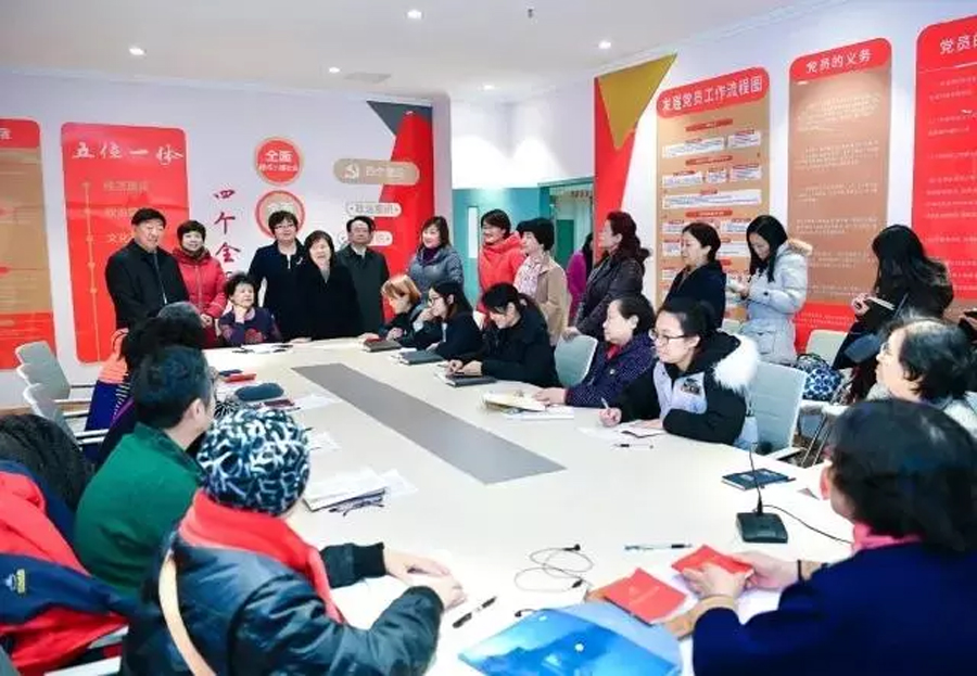 调研中,沈跃跃一行与正在新村街道怡海集团党群活动服务中心学习的党员们交流了十九大对妇女百姓生活带来的变化,听取了“美好家庭”活动获得者刘老师讲述家庭建设对生活幸福指数影响的重要性。同时,在怡海社区老年大学正在音乐班学习的社区业主歌唱《共筑中国梦》。当听到怡海业主说对“五位一体”总体布局、“四个全面”战略布局和强化“四个意识”印象深刻时,沈跃跃鼓励大家要充分发挥社区党员在群众中的先锋模范作用。