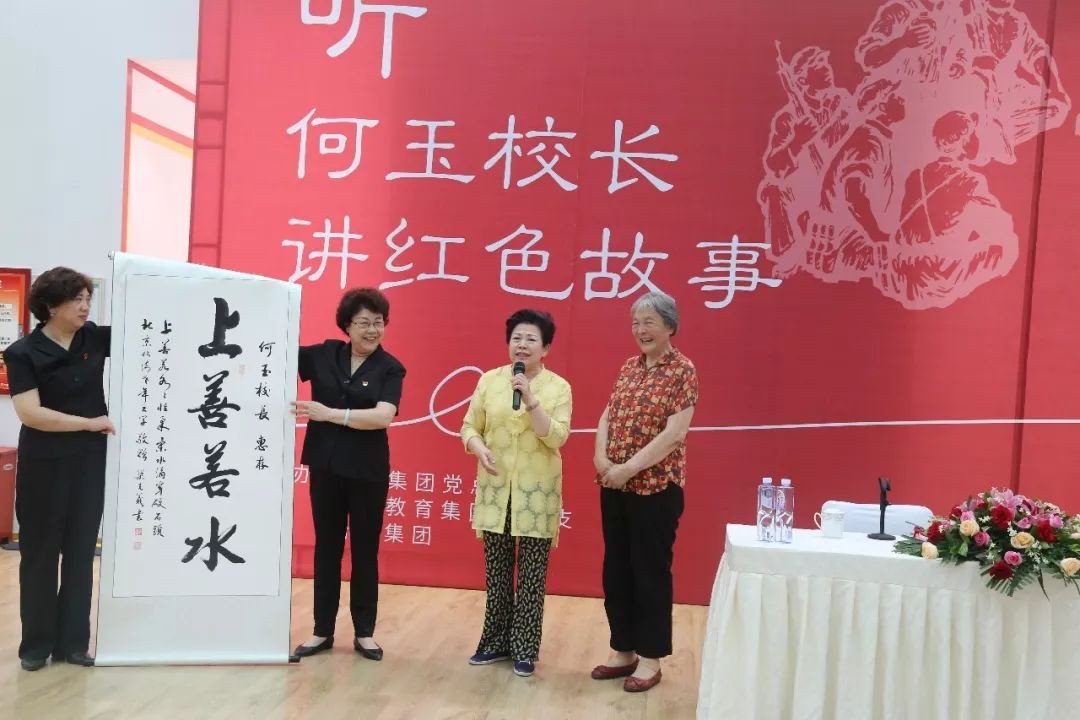 何玉校长讲座结束后,怡海集团董事局主席王琳达代表怡海集团及怡海社区大学对何玉校长的到来表示感谢,并赠予社区大学书法老师作品。
