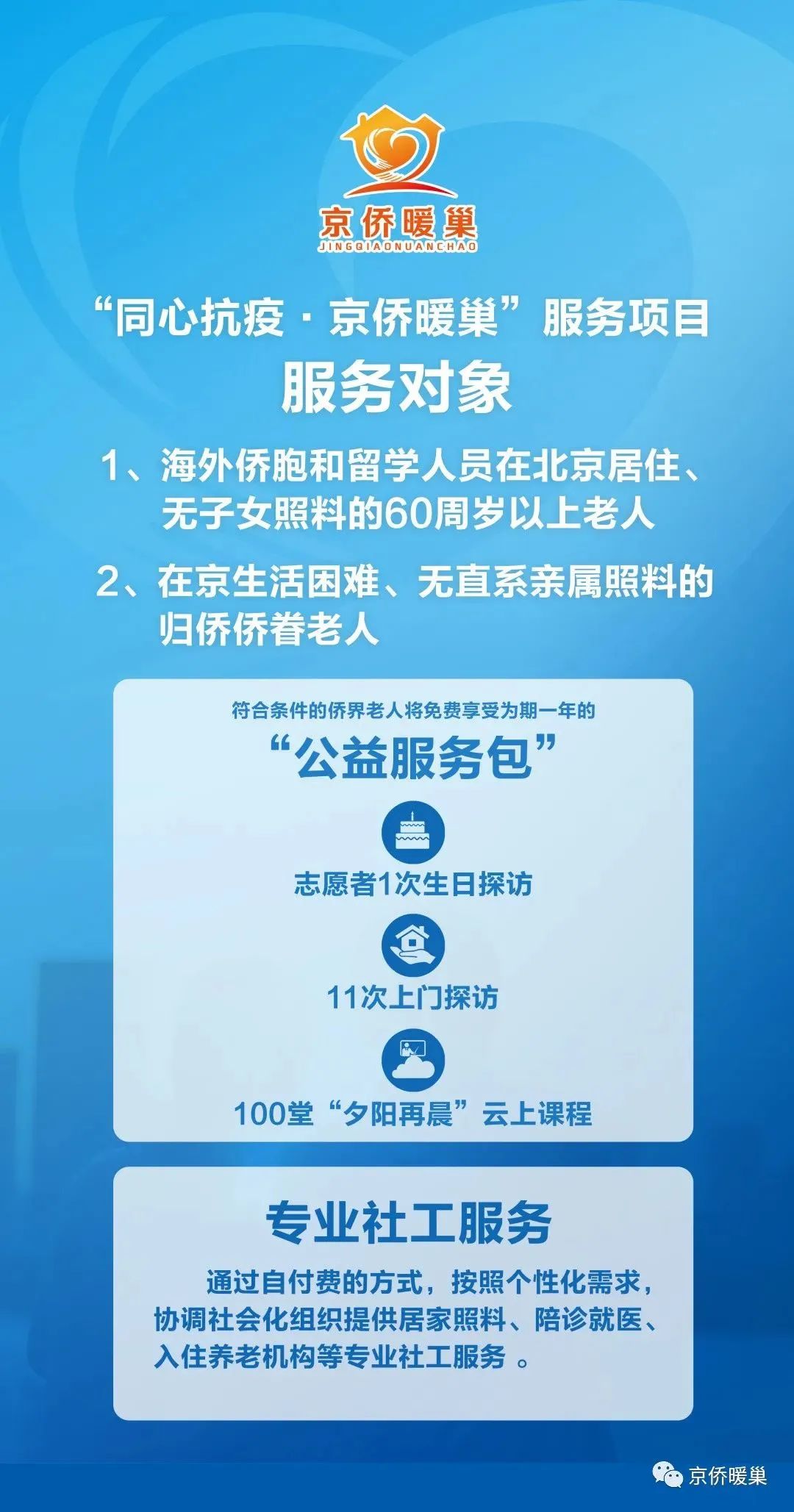 受疫情影响,很多海外侨胞心系家乡、牵挂父母,却无法回国探亲,为解决疫情影响下在京侨界空巢老人生活困难等问题,2022年5月28日,北京海外联谊会、北京市归国华侨联合会、北京侨商会以“同心抗疫连四海,京侨暖巢一家亲”为主题,共同推出服务项目,并举办线上发布会。