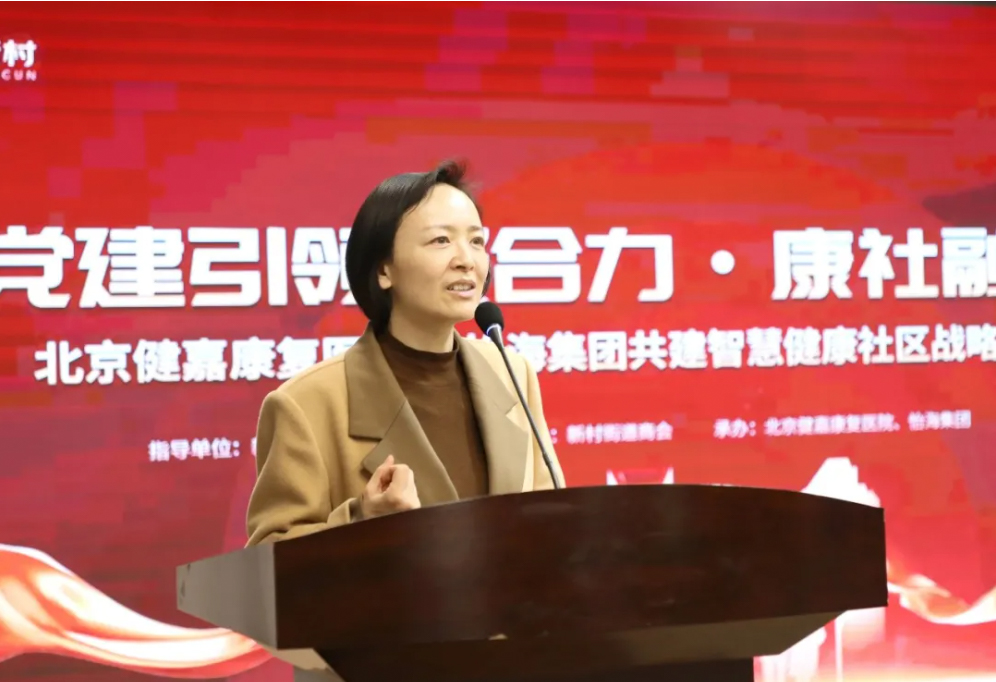 吴婧书记在致辞中表示,此次合作以党建为引领,将优质医疗资源与社区服务深度融合,是践行以人民为中心理念的具体体现。怡海花园是北京市“七有”“五性”的服务示范样本和一流和谐宜居社区,北京健嘉康复医院是全国康复领域的领军力量,希望双方以此次签约为起点,持续深化合作,共同打造智慧健康社区,树立健康街道建设的新标杆,为怡海花园和周边居民提供更加优质、便捷的医疗健康服务。