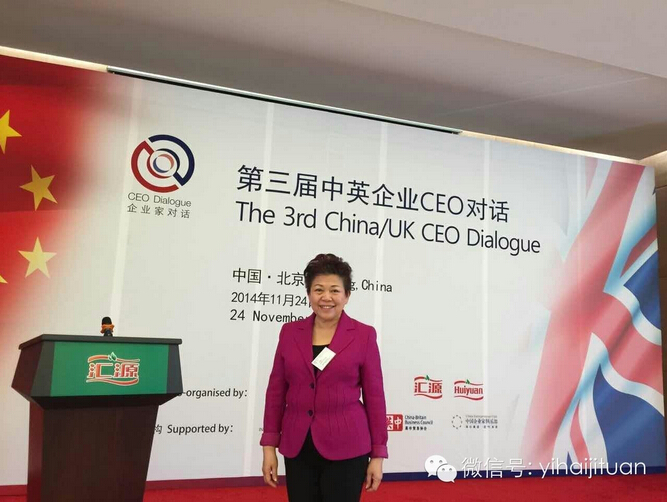 2014年11月24日,第三届中英企业CEO对话在北京密云汇源山庄举行,怡海集团董事长王琳达女士应邀出席。 怡海集团意向境外投资开发,中英企业CEO对话平台给了怡海集团更大的海外投资的机会和挑战。王琳达董事长表示,中国企业家与英国商界的联系,促成了双方合作的可喜机遇,怡海集团会抓住机会寻求发展共赢。