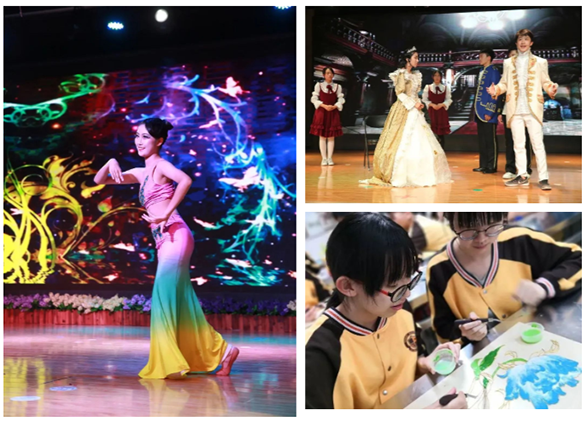 学校依靠专业的艺术、体育教师团队,开设多种文化与艺体类课程及课外选修课,每年开展艺术节、体育节。形成了长效可持续发展的艺体课程体系,在开发同学们艺术潜能的同时,提高创造力和想象力,促进不同层次需求、不同兴趣需求的学生协调发展。