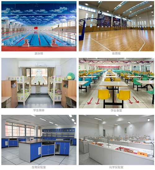 怡海中学总建筑面积4.3万平方米,基础设施完善,既是一所学校,也是一个新型学习社区。这里有各类实验室和专用教室、图书馆、体育馆、游泳馆、人工智能训练场、可供600人就餐的学生食堂和700张床位的学生宿舍。这里,你想要的应有尽有,那叫一个绝绝子!