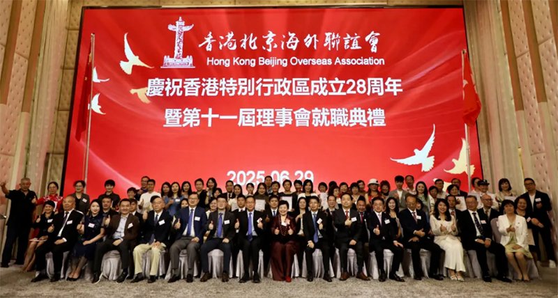 2025年6月29日,庆祝香港特别行政区成立28周年暨香港北京海外联谊会第十一届理事会就职典礼隆重举行。中联办社团联络部、北京海外联谊会、北京市侨联相关领导,香港北京社团总会、各省级社团领袖、香港各界知名人士及香港北京海外联谊会会员代表300余人齐聚香江,共同见证这一重要时刻。
